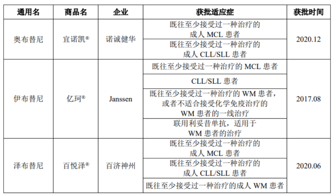 图:中国获批上市的BTK抑制剂,来源:招股书