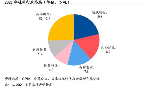 其中,硅料即多晶硅,其本身隶属化工行业,在光伏产业链中纯度则需要达到99.9999%以上。因此具有高资金投入及高技术壁垒特征,产能也最为刚性,扩产周期也最长。其价格和质量对光伏发电的成本和效率,也起着至关重要的作用。