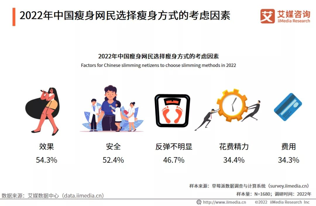据艾媒咨询相关数据,对于饮食瘦身,食材营养成分及丰富程度是受访网民饮食瘦身最关注因素,分别占比53.6%及45.3%。可见,除了饮食营养成分外,瘦身需求人群越来越注重饮食餐谱中食材情况,在达到瘦身的目的下,食用体验也愈发重要。