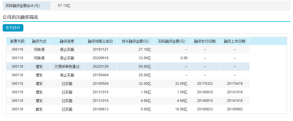 2019年7月6日,东方日升拟发行27.1亿元的可转换债券被深交所否决;2021年,4月9日,东方日升33亿元的可转换债券计划被中国证监会撤销批复;2022年6月10日,东方日升50亿元向特定对象发行股票计划被深交所否决,但8月其定增的审核已获通过。