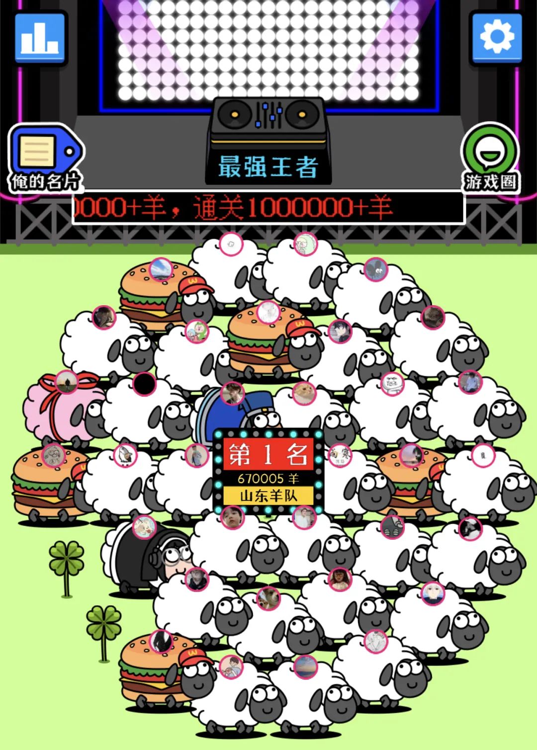 不仅如此,《羊了个羊》还在游玩之外设计了大量社交辅助系统。打开游戏最先看到的是“羊群”,即同一省份的用户属于同一代表队,将用户与地域身份绑定,各省份通关的“聪明羊”数量会进行实时排名,坚持不懈挑战关卡可以“为省争光”。