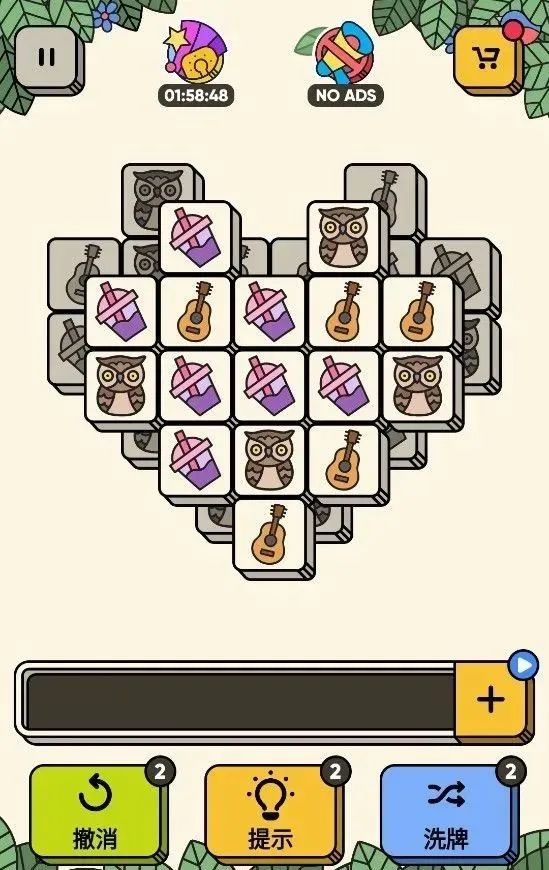 游戏中所有砖块是交错叠放在一起的,上层的会遮住下层的图案,游玩体验就类似一个“立体版连连看”。但玩家无法预知下层会出现哪些图案,仅能看见部分被挡住的砖块,消除表面的可视图案后,一旦新一层的砖块无法凑齐3个,就容易卡关。因而一旦砖块数量大幅增加,游戏难度就呈几何级提升。