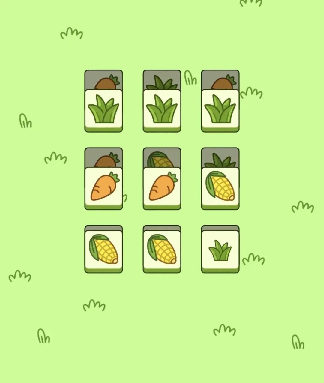 《羊了个羊》的玩法一目了然,简单来说即休闲游戏常用“三消玩法”的变种。在一堆印有不同图案、随机堆叠的砖块中,玩家需要通过点选,来将特定砖块移入下方的条状槽内,如凑齐3个相同图案就会达成“消除”,条状槽如被填满7个砖块即为游戏失败。