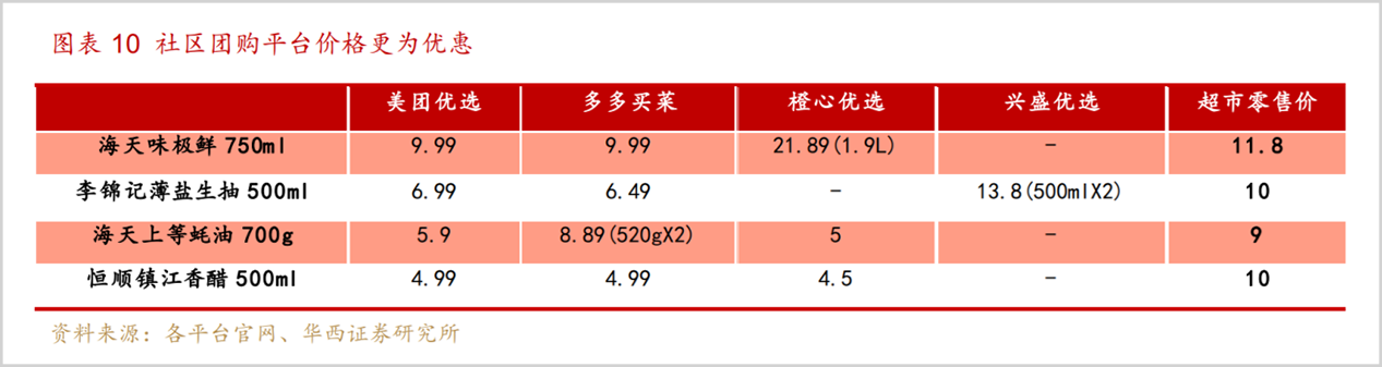 以社区团购为例,据华西证券研究,通过统计美团优选、多多买菜、橙心优选等几大平台,零售价低于传统渠道20%以上,打破了传统渠道通过批发商、分销商及终端零售商的层层加价体系。