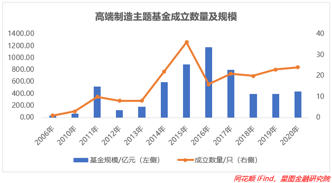 首先我们要明确何为高端制造主题基金。这一概念比较宽泛,《中国制造2025》提出的高端制造十大重点领域包括新一代信息技术产业、高档数控机床和机器人、航空航天装备、海洋工程装备及高技术船舶、先进轨道交通装备、节能与新能源汽车、电力装备、农机装备、新材料、生物医药及高性能医疗器械等,市场上目前形成共识的高端制造则包括航空装备、卫星制造与应用、轨道交通设备制造、海洋工程装备制造、智能装备制造五个细分领域。