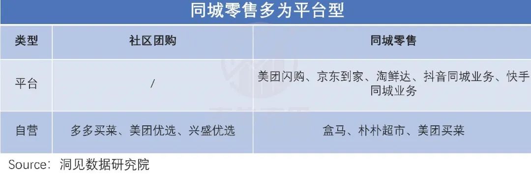 同时可以看到,入局同城零售,普遍做法是“平台型”;相比之下,之前受宠的社区团购,多是“自营模式”。