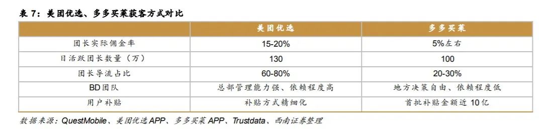 这种不匹配,使得美团优选在获客上,更依赖团长和地推团队引流、维系社群,佣金负担重。
