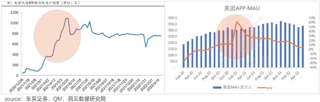 但2021Q3开始,团购带来的用户增长持续放缓,且未再现反转迹象。这似乎意味着,美团在优选业务上的MAU增长变得艰难起来。