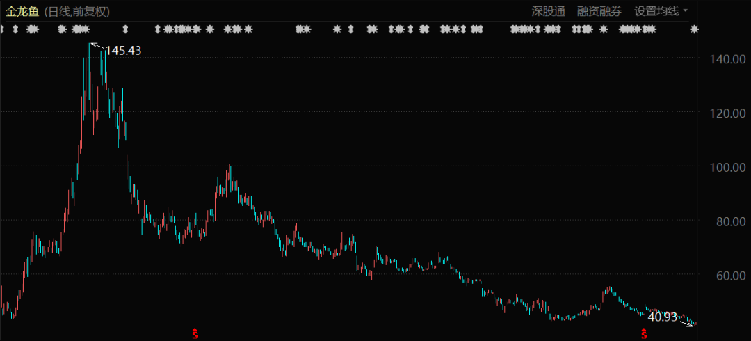 到2021年年报,四只基金却完全从金龙鱼的前十大股东列表中消失。也就是说,林园在金龙鱼股价65元左右时,对其进行了大规模的减仓处理,认输退场。
