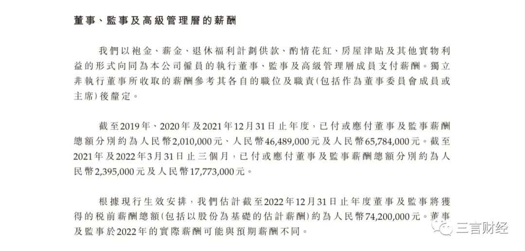 2019年至2021年,公司已付或应付董事及监事薪酬总额分别为201万元、4648.9万元和6578.4万元。