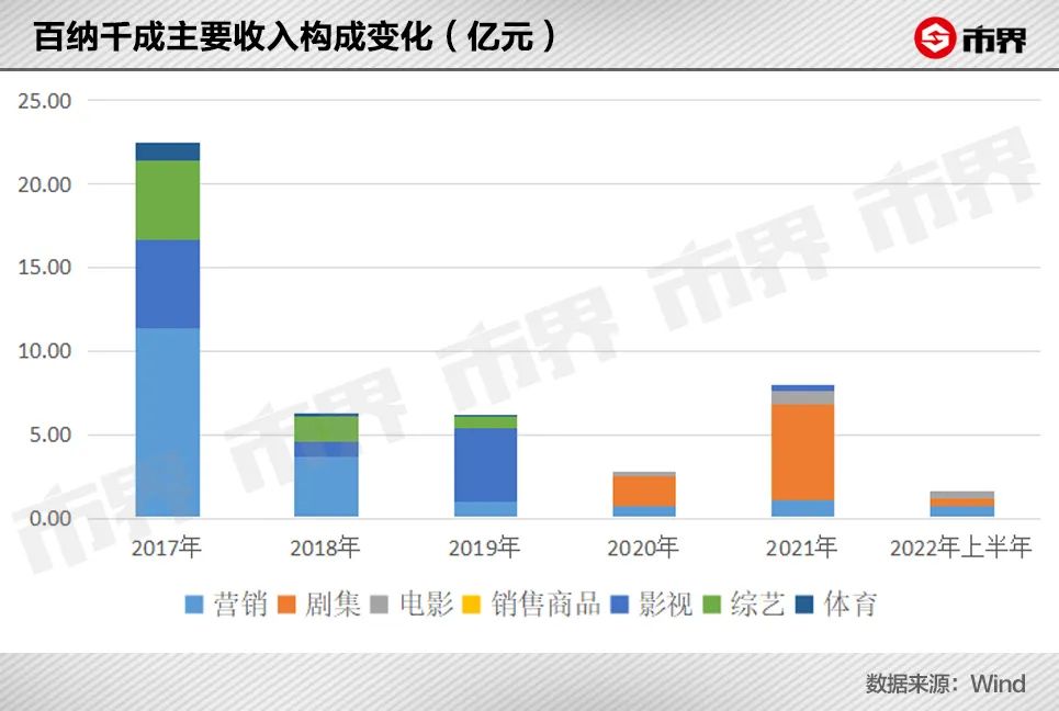 此前,百纳千成的业务由影视、综艺、体育、营销构成,2020年后逐渐变成影视、营销、动漫业务,显然公司依然在赶行业顺风车,动漫是在2019年《哪吒之魔童降世》上映后再掀热潮的。