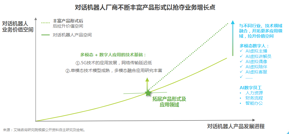 (对话机器人厂商不断丰富产品形态抢夺业务增长点 图源:艾瑞咨询报告)