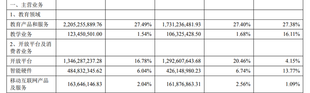 尽管从营收份额上看,比重最大的教育业务并未与其他拉开较大差距,但考虑到悬殊的毛利率对比(52.16%,领先第二位23个百分点),教育营收无疑撑起了飘红的利润。