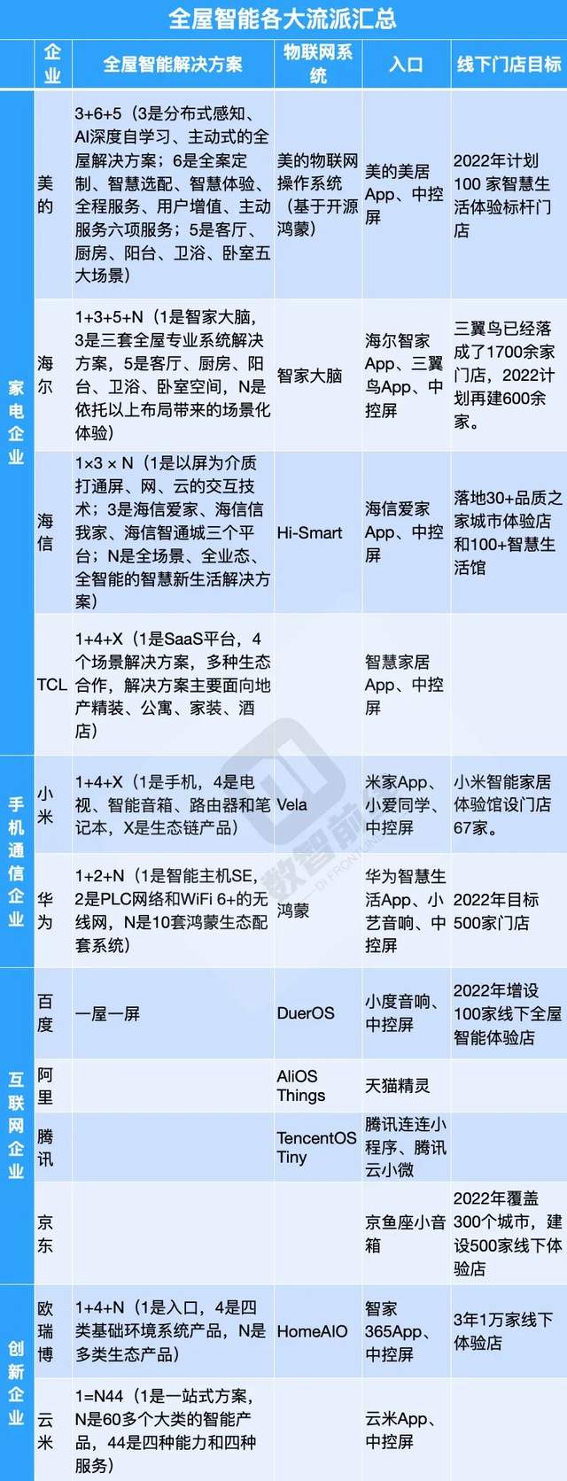 智能家居赛道里通常分了几个流派:海尔、美的、海信等家电企业是一类,百度、阿里、京东等互联网公司是一类,华为、小米等偏手机硬件的是一类,欧瑞博、涂鸦智能等创新企业是一类。