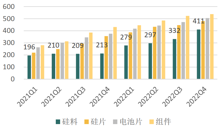 从实际情况看,国内的光伏装机需求一直保持在较为稳定的态势中。2021年以及2022年上半年,原本得益于“双碳”政策驱动的国内光伏,之所以没有出现大规模增长,是因为上游多晶硅价格上涨过快,导致下游组件价格上涨,抵消了光伏发电的平价优势,使得新建电站无法保持合理报酬率,进而导致这两年的光伏没有超预期。