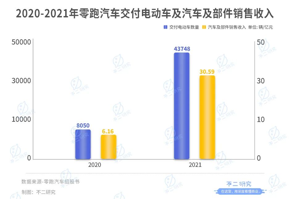 「不二研究」据零跑汽车招股书发现:今年一季度,零跑汽车营收19.92亿元,同比增加616.37%;同期,其经调整后的净亏损为9.69亿元,同比增加161.04%。