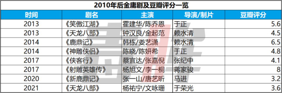毒眸曾在此前的文章中提到(往期文章:《最差的金庸剧,永远是下一部》),在21世纪的头个十年,尽管翻拍金庸剧已然顶着珠玉在前的巨大压力,但仍不乏佳作涌现;但到了最近十年,新的一批金庸剧想要突破6分都已是难事,更别说要塑造出新一代的“金庸女神”。
