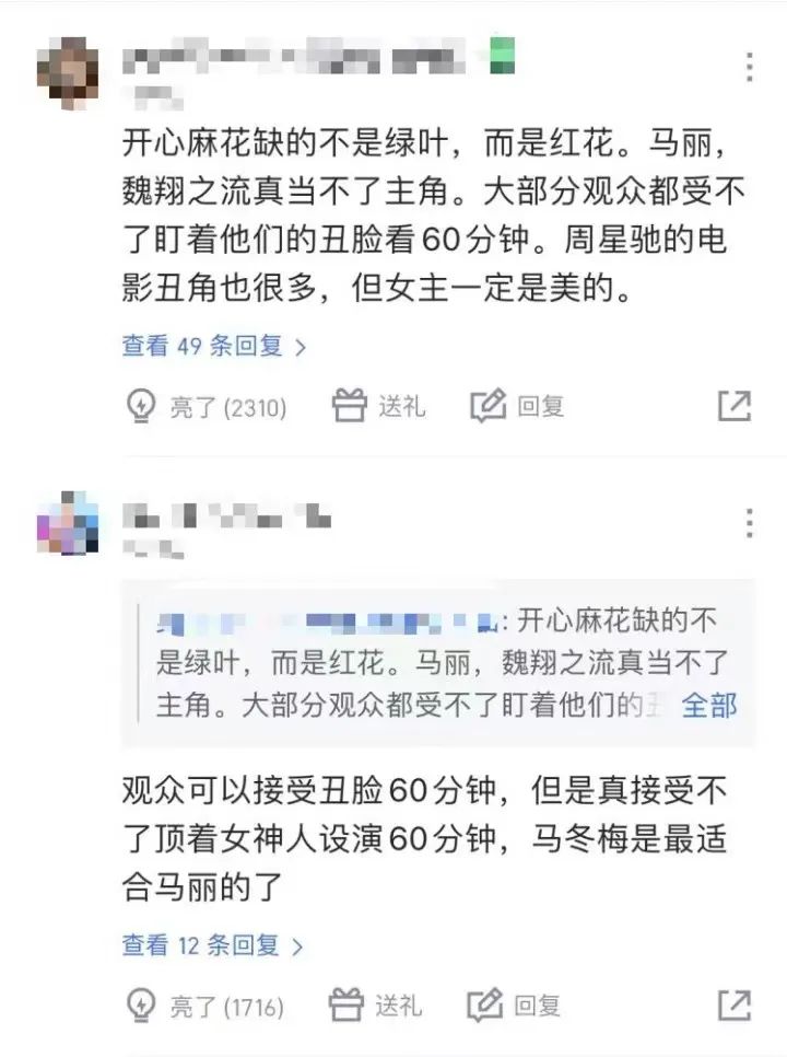在这份榜单里,排名第一的是喜剧演员马丽。自2015年《夏洛特烦恼》之后,沈腾、马丽的组合一度成为中国喜剧电影市场的门面。马丽之后也出演了多部喜剧作品,当中不乏口碑票房双丰收之作,甚至也在《羞羞的铁拳》和《这个杀手不太冷静》当中扮演“女神”定位的角色。但这些作品归根结底是服务于喜剧效果的,即便定位是“女神”也难免需要扮丑。在虎扑,直男们常有关于马丽是否适合演“女神”角色的争论,争论的背后,是对上一代传统审美中大银幕女神的怀缅。
