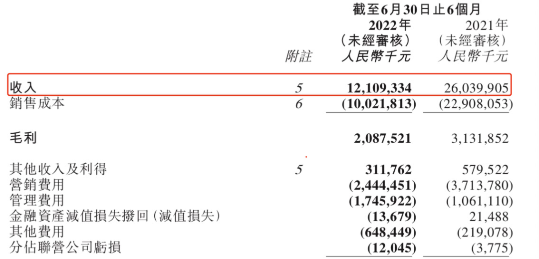2022年上半年,国美总营收为121.09亿元,相比去年同期190.75亿元的总营收下滑了53.5%,归母净利润约为亏损29.66亿元,而去年同期亏损19.74亿元,亏损涨幅为50.3%。