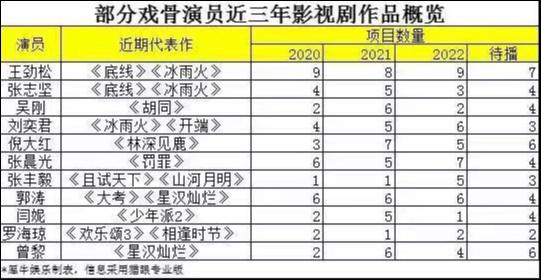 以这部分演员为主,当前老戏骨们正在获得更多机会,甚至在头部剧中刷屏。犀牛君统计了近三个月热门剧集中担任主要角色的老戏骨面孔,并对其近三年的项目数做了统计。
