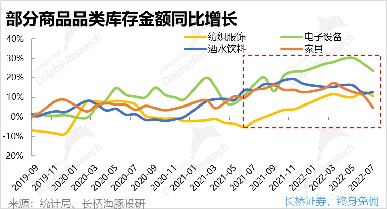 自 2021 下半年以来,可以看到服饰、家具、电子设备和酒水饮料的库存金额都处于增长态势,而国内社零则持续疲软,可以想见拼多多在接下来的三、四季度里,仍会继续受益于此轮消费降级和去库存周期,从而继续保持高于行业的 GMV 增长和广告变现率水平。