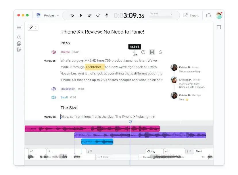 美国音视频编辑公司 Descript 开发了播客编辑功能「Overdu」,它可以克隆创作者的声音,创作者输入需要的单词,就能用原有声音生成新的音频,方便快速修改播客。
