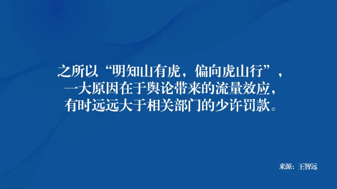 之所以“明知山有虎,偏向虎山行”,一大原因在于舆论带来的流量效应,有时远远大于相关部门的少许罚款。