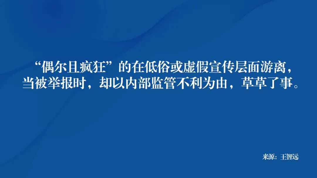 远处来看,大宗日用,房产行业、IT数码、车企等均涉及过相似问题,它们“偶尔且疯狂”的在低俗或虚假宣传层面游离,当被举报时,却以内部监管不利为由,草草了事。
