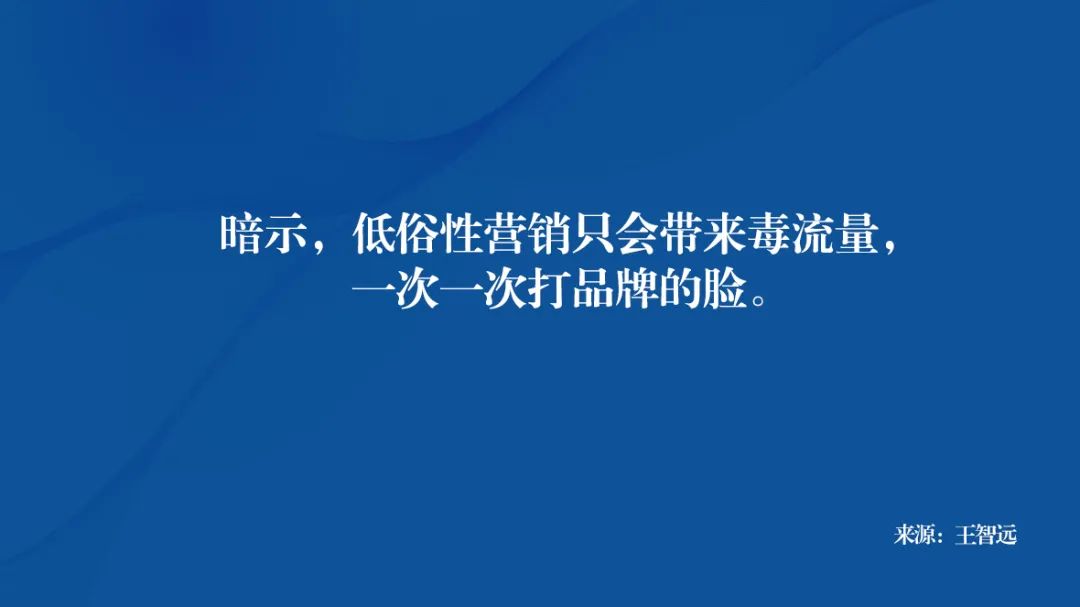 从长期发展看,会让用户觉得有“割韭菜”嫌疑,最终引起反感,所以,暗示,低俗性营销只会带来毒流量,一次一次打品牌的脸。