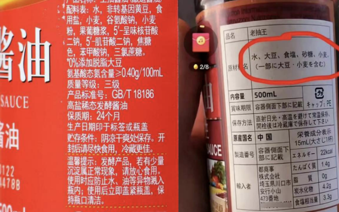 更严重的是,有网友发现自己在日本买的海天酱油,配料表中没有添加剂,于是带来了这几年市场十分敏感的双标质疑,于是开始有人把自己家的海天酱油倒进了下水道。