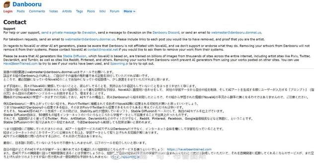 网站Danbooru发布的声明显示,像NovelAI这样的生成器是在数千个网站的数十亿张图片上进行训练的,包括Pixiv、Twitter、DeviantArt和Tumblr等艺术家网站,以及Reddit、Pinterest等网站,所以从Danbooru平台上删除作品并不会阻止AI继续使用画家在其他网站的作品。也就是说,只要是网络上开放的,就有可能成为学习数据,除了询问模型的开发者之外,没有其他方法可以阻止自己的作品被AI学习,除非画家把自己的画全网都删完,否则也很难一一查清楚是否被用来学习了。
