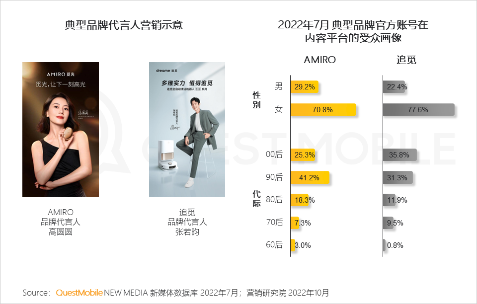 3.4 新品牌在快速发展、取得一定积累后,营销向传统方式回归,以明星代言的形式巩固品牌对目标人群的吸引力