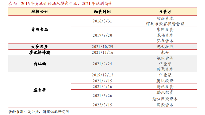 这样的高速扩张离不开资本支持,资料显示2016年资本开始涌入“卤味”赛道,2021年达到融资高峰。