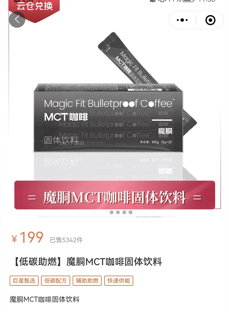 市面上对于这款咖啡在市面上连勉强过关的水花都无溅起。目前,电商平台上关于这款咖啡的销售数据大多在几十单。即便是巨星传奇自营小程序,巨星优选平台内,也不过5000单的销售量。