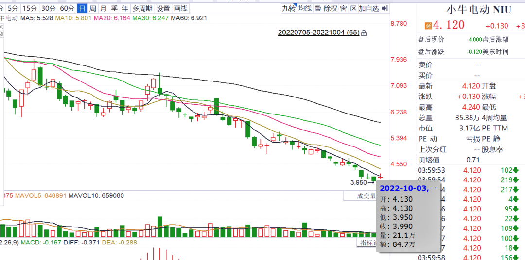 受此影响,小牛电动的股价,9月盘中价格下跌至4.5美元,后于10月3日更跌至3.95美元,创下了上市后新低。![]()