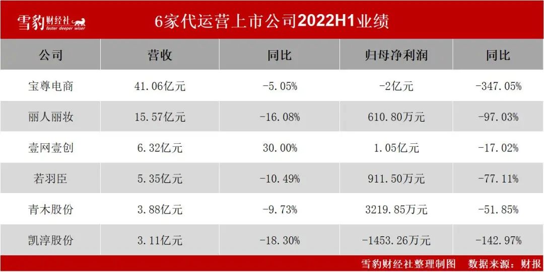今年上半年,6家上市代运营公司普遍面临营收进入瓶颈期、净利润大幅跳水、竞争压力加剧的窘境。