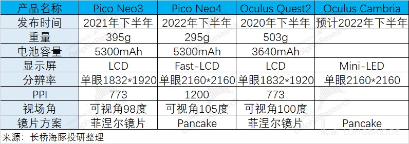 - Pico:2022 年 9 月发布的新品 Pico Neo 4,产品重量进一步下降至 300g 以下,减少对头部的佩戴压力。此外在使用体验上,分辨率和 PPI 都有明显提升,可视角扩大到 105 度;