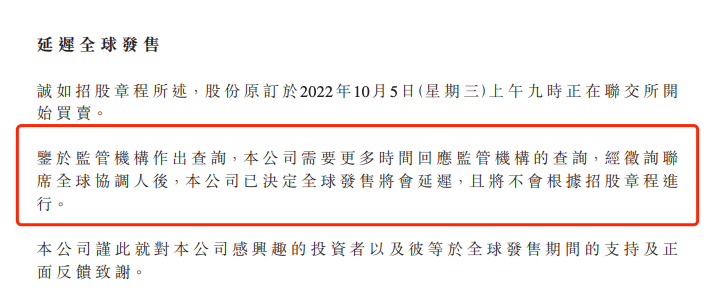 近日,百德医疗发布公告称,鉴于监管机构作出查询,公司需要更多时间回应监管机构的查询。经征询联系全球协调人后,决定全球发售将延迟,同时其将退回香港公开发售的申请股款。