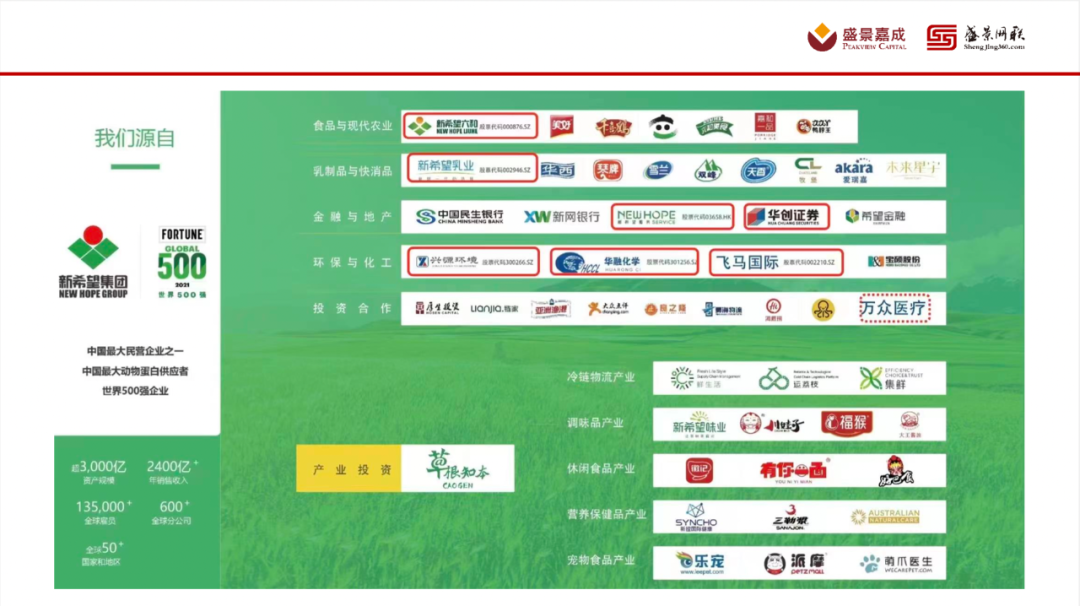 目前,草根知本控股、孵化了100多家公司,围绕乳品、冷链物流、调味品、休闲食品、营养保健品、宠物食品六大赛道,借助新希望的品牌资产、卓越的运营管理能力和优秀人才,草根知本已经孵化了1家上市公司新乳业(002946)、1家估值超百亿的企业(鲜生活冷链)和2家估值超30亿的企业,拥有300多个子公司合伙人和200多家合伙企业,初步实现了新希望集团从企业市场向消费者市场转型布局的战略使命。