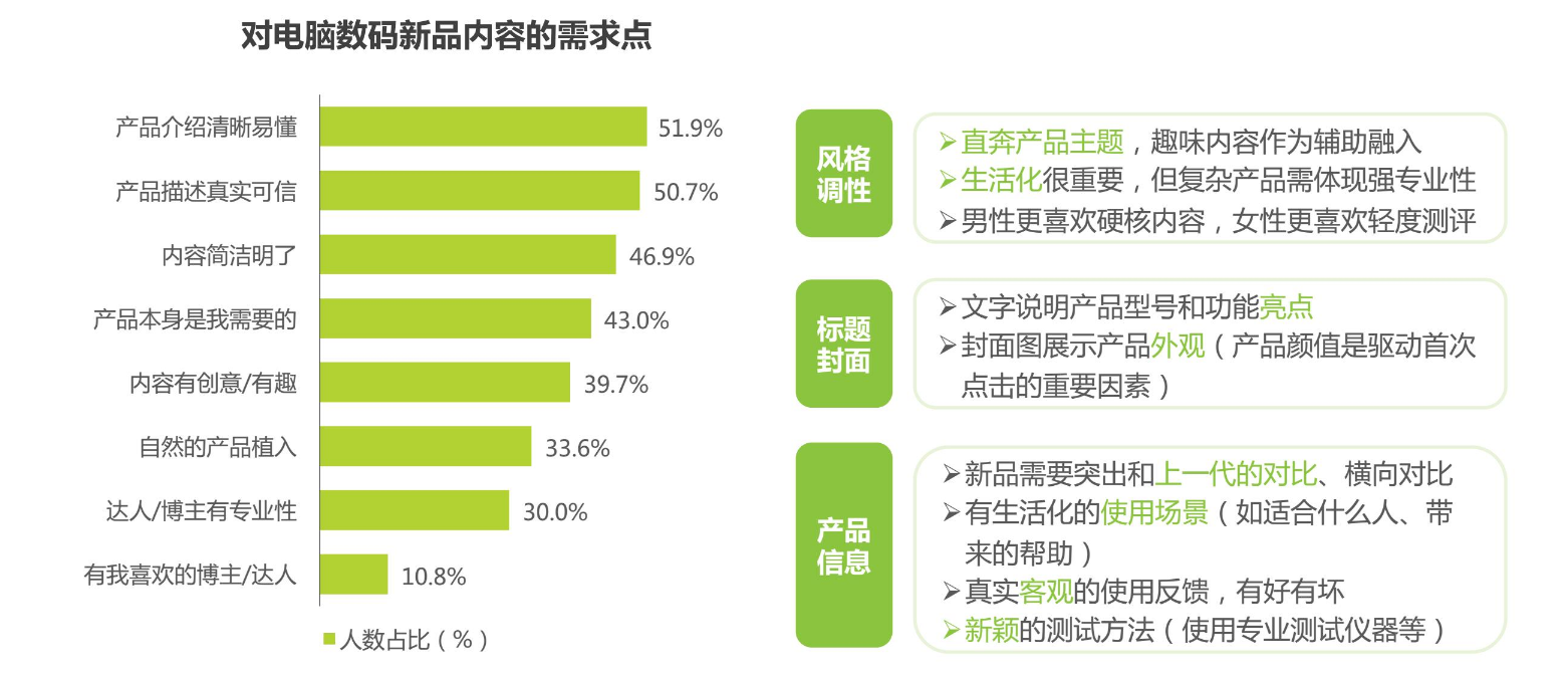 根据艾瑞咨询的调查,比起那些硬核宣传语和只有行内人能读懂的专有名词,大部分对电脑一知半解的消费者更希望厂商在打广告时学会“讲人话”。报告显示,51.9%的消费者认为电脑数码产品宣传要做到“产品介绍清晰易懂”,也有46.9%的人认为“内容简洁明了”是最重要的。