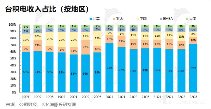 从美国地区收入占台积电的比例看出,美国方面的政策对台积电有较大的影响。如果后期美国半导体政策继续深化,中国半导体行业和台积电的业务关联度可能进一步降低。从自主可控的角度看,中国芯片还是主要指望自身去美化产线的建成。