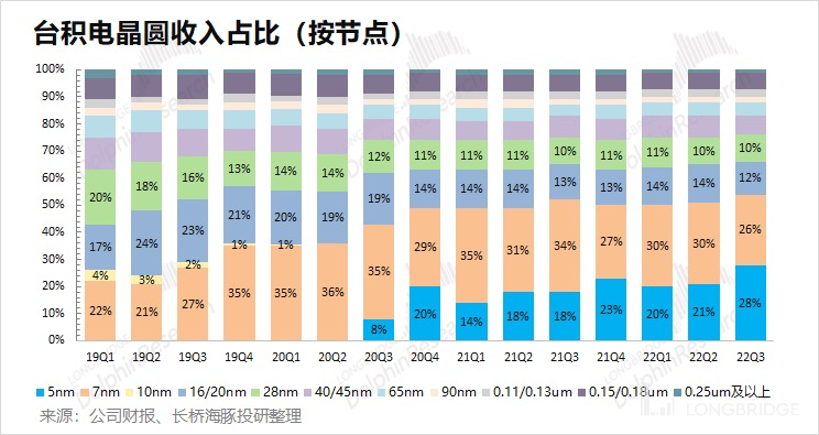 海豚君认为整体芯片制程都会往更高制程的方向提升,原来智能手机和高性能计算将转向 3nm 和 5nm 制程,而其余芯片需求提升回填 7nm 制程。整体芯片制程向高端演进有望进一步提升先进制程的收入占比,从而提升公司产品出货均价。