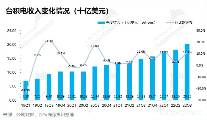 台积电(TSM)于北京时间 10 月 13 日下午的长桥美股盘前发布了 2022 年第三季度财报(截止 2022 年 9 月),要点如下: