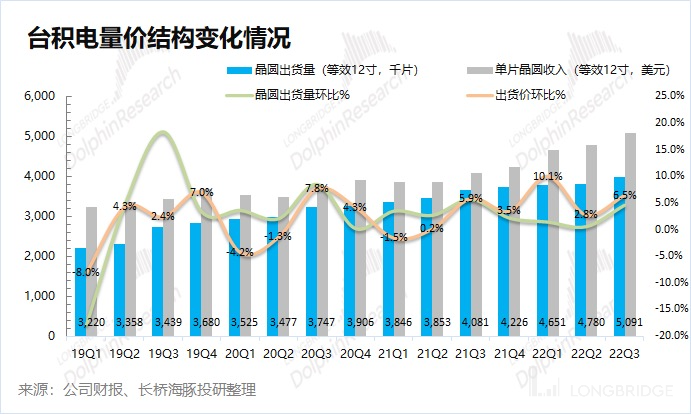 1、半导体下行周期中,台积电的营业收入如何再创新高,晶圆出货量和价格的维度分别贡献了多少?