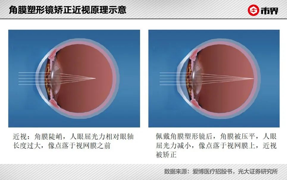 目前,被证明有效的近视矫正方法有3种:屈光手术、药物干预和光学矫正(即角膜塑形镜)。其中,屈光手术只适用于18岁以上的成人;药物低浓度阿托品还未正式获批,仅部分医院自制,且药物本身含毒性、副作用大。对于青少年来说,现阶段有可能延缓近视发展的方法是佩戴角膜塑形镜。