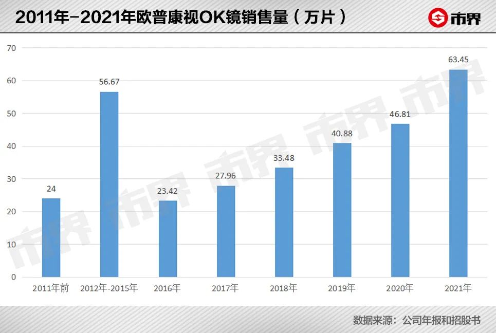 虽然价格不断走高,但是根据欧普康视年报,2021年欧普康视的OK镜销量远超2012年至2015年四年销量合计的56.67万片,至今欧普康视的OK镜销量已超316万片。