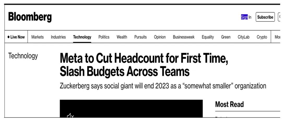 上个月底,在每周举行的员工问答会上,扎克伯格明确表示Meta将进行重组团队和裁员计划,用以削减开支和调整优先事项,而这是自2004年Facebook成立以来的首次大规模预算削减。此外,扎克伯格还直言“Meta将稳步减少员工数量的增长,2023年Meta的规模会比今年小。”