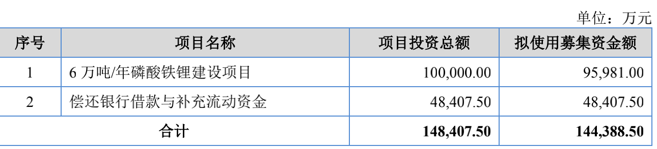 招股书显示,投建6万吨/年磷酸铁锂建设项目主要是满足下游客户日益增长的订单需求,增强市场竞争力。该项目建设周期14个月,项目投产后第一年磷酸铁锂产能达到设计产能的60%,投产后第二年产能达到设计产能的100%。 今年9月19日,该项目已取得贵阳市生态环境局下发的环评批复。公司还对该项目寄予厚望,预计“本项目可实现税后收益净现值为10.89亿元,税后内部收益率为20.32%,含建设期的税后静态投资回收期为6.70年,具有较好的盈利能力。”