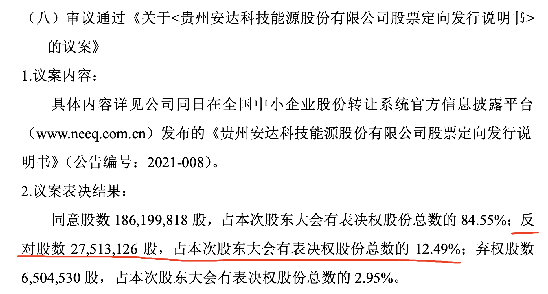 (部分中小股东投票反对该次定增,来源:公司公告)