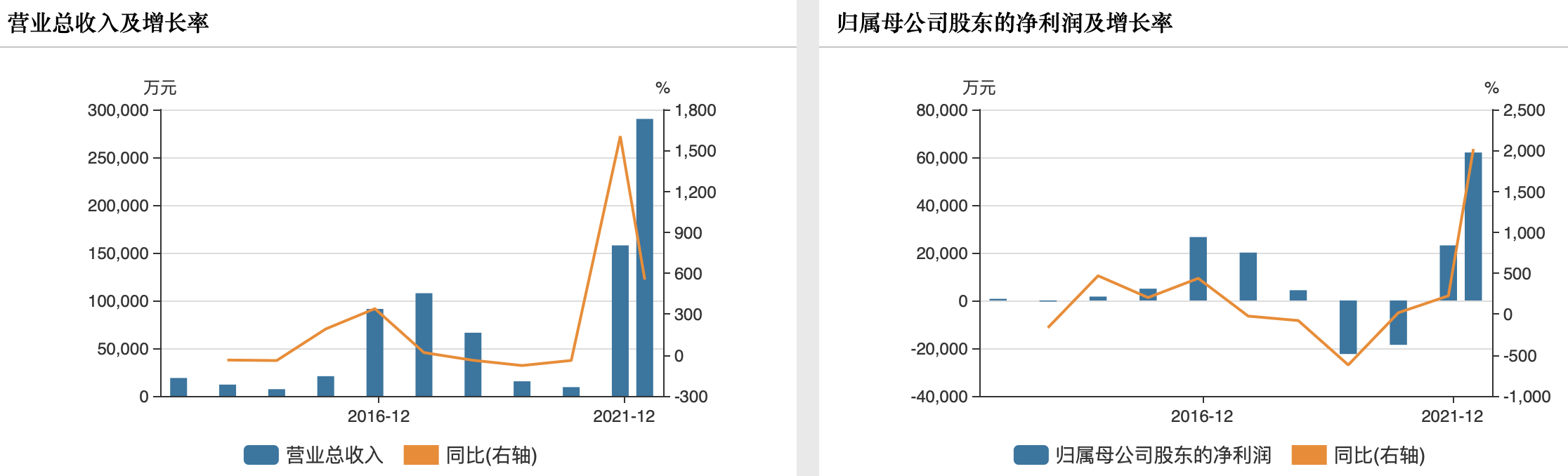 得益于此,安达科技迎来第二次业绩爆发期。2021年、2022H1,营收分别实现15.77亿元、29.02亿元,同比增长1603.06%、555.74%;归母净利润2.31亿元、6.20亿元,同比增长224.24%和2013.71%。